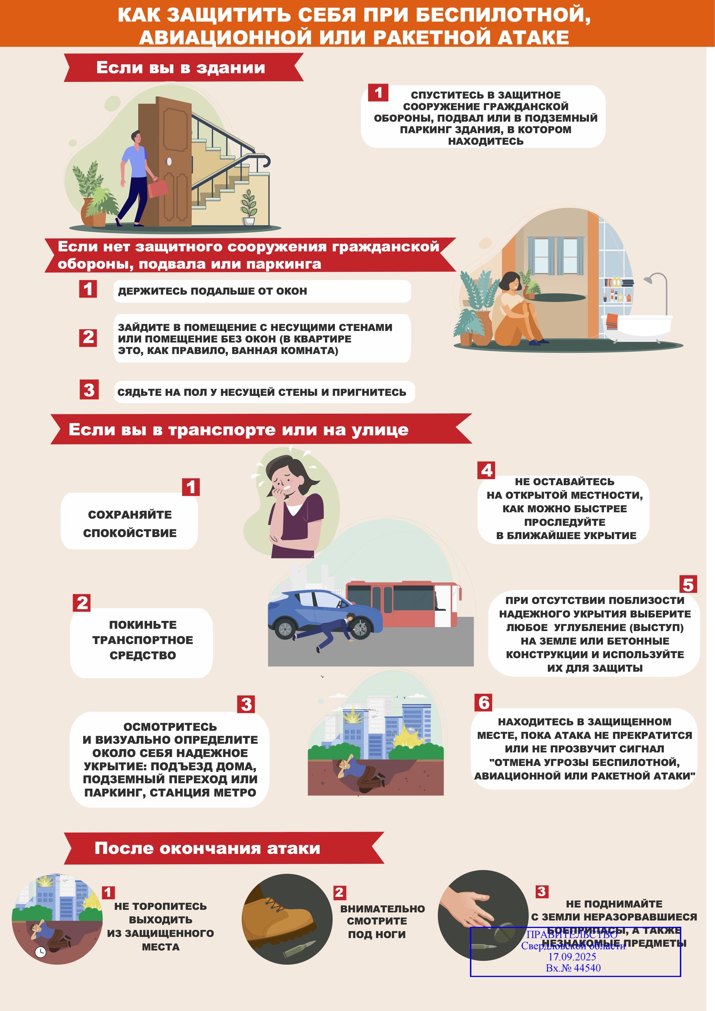 Если вы видели дрон, то необходимо сначала обеспечить собственную безопасность, спрятаться в помещении или укрыться за деревьями. После этого сообщить о случившемся в полицию или по номеру 112, сообщить свои фамилию, имя, отчество; наименование объекта (территории) и его точный адрес. Нужно понимать, что, так как сейчас запрещены полеты [дронов], скорее всего, это что-то незаконное. Нужно быстро произвести анализ места, где вы находитесь, найти безопасное укрытие — какое-то капитальное строение или подвал.