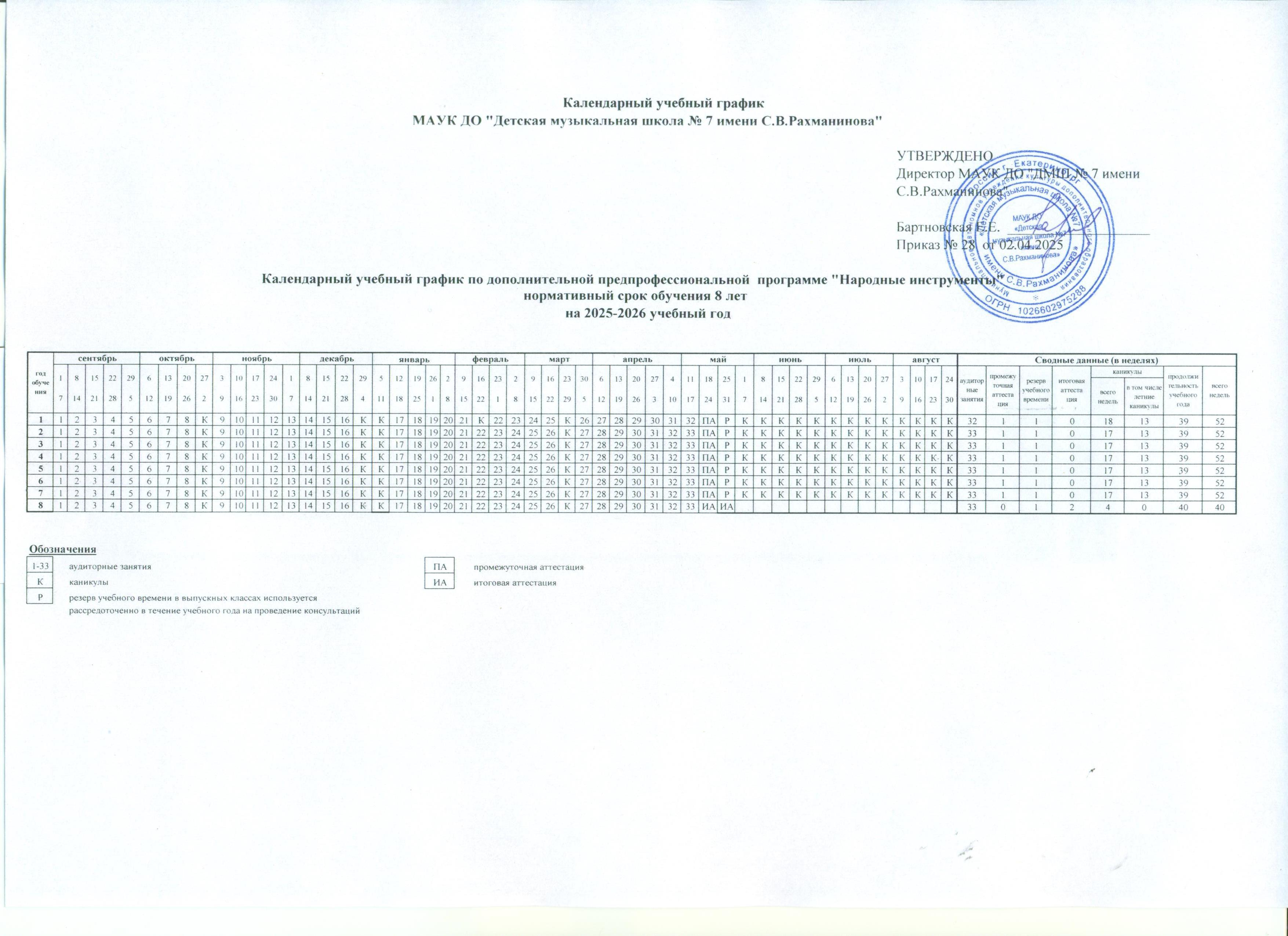 Календарные учебные графики МАУК ДО ДМШ №7 имени С.В. Рахманинова на 2025 — 2026 учебный год