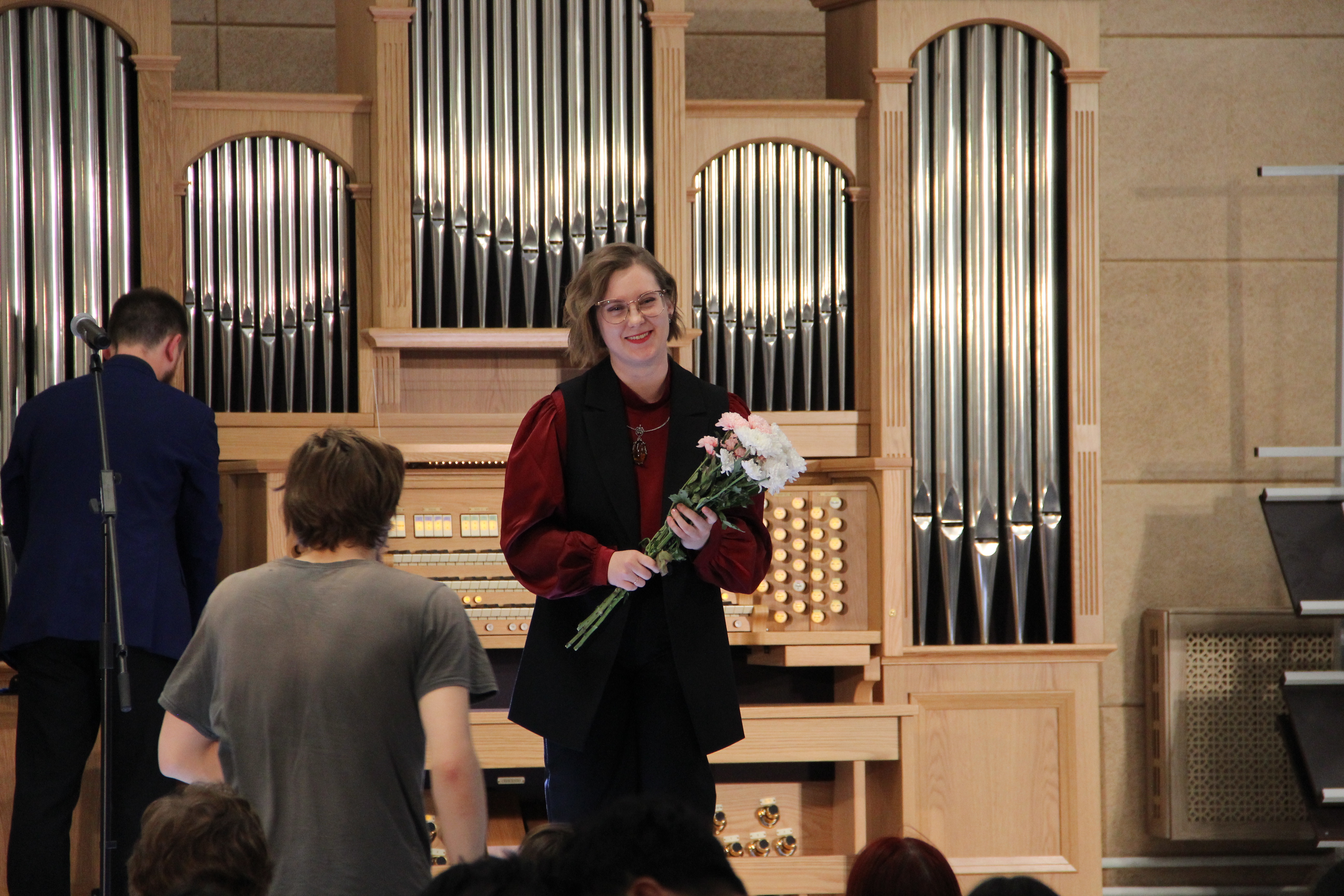 За органом выступила Анна Горбач, титулярный органист Собора Пресвятой Троицы (Святого Роха) в Минске, лауреат международных конкурсов и преподаватель Уральской государственной консерватории имени М.П. Мусоргского. Её исполнение шедевров мировой органной музыки вызвало восторг у публики.